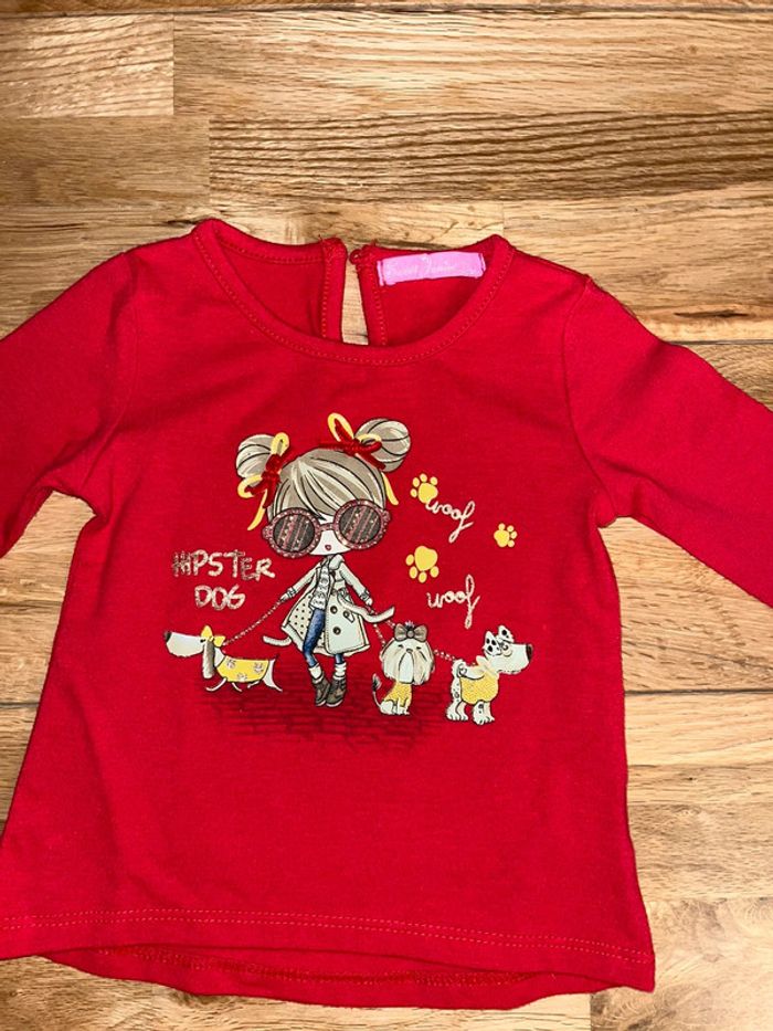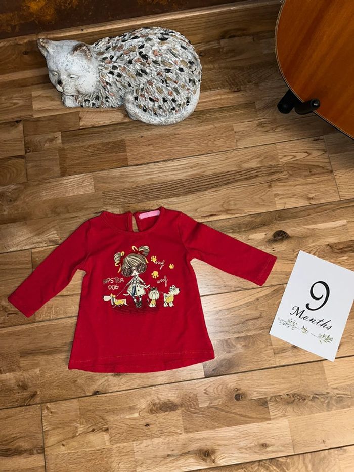 Joli t-shirt rouge à motifs Très bon état 6-9 mois N’hésitez pas à faire un tour dans mon dressing je fais des prix sur les lots ☺️