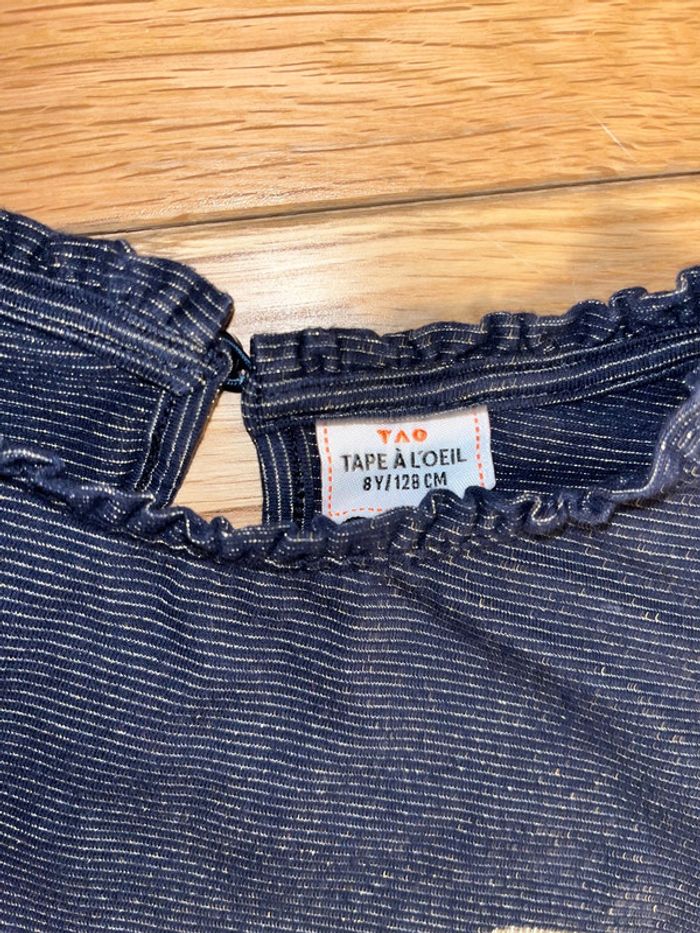 T-shirt marine ligné doré TAO très bon état 8ans/128cm - photo numéro 2