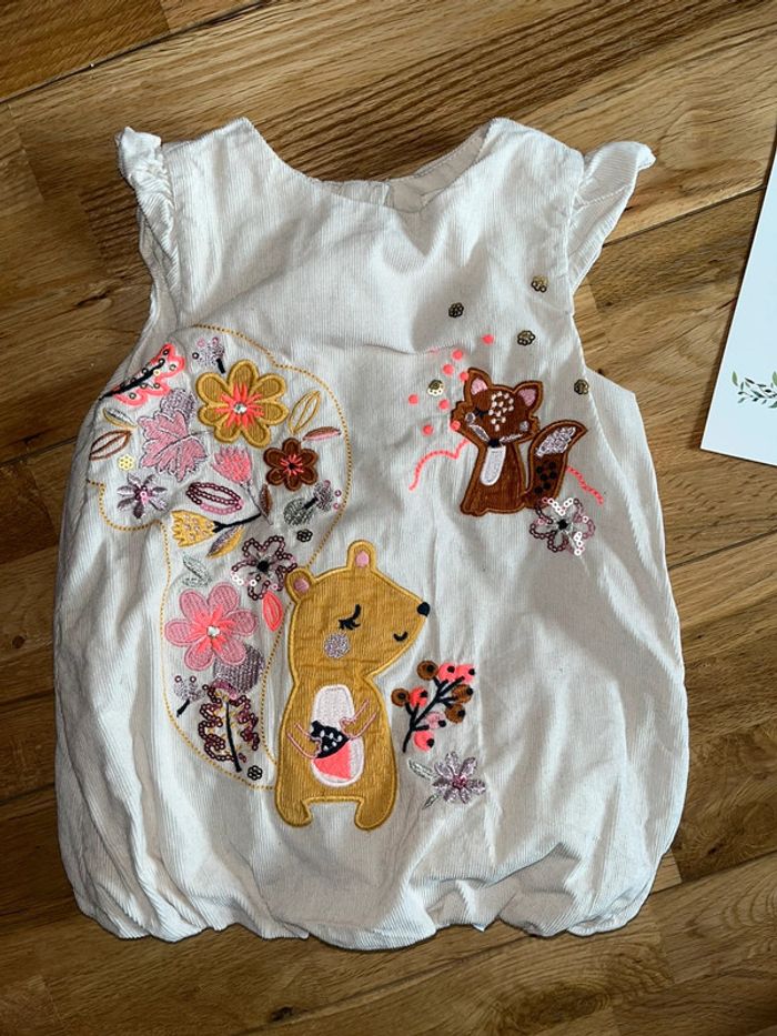 Jolie robe en velours finement côtelé motifs Très bon état porté une fois Dpm 9mois/71cm N’hésitez pas à faire un tour dans mon dressing je fais des prix sur les lots ☺️
