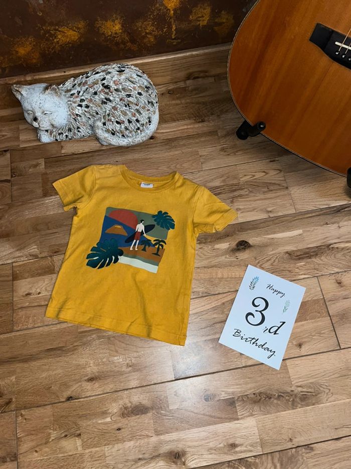 T-shirt jaune à motifs TAO Très bon état 3 ans/98cm N’hésitez pas à faire un tour dans mon dressing je fais des prix sur les lots ☺️