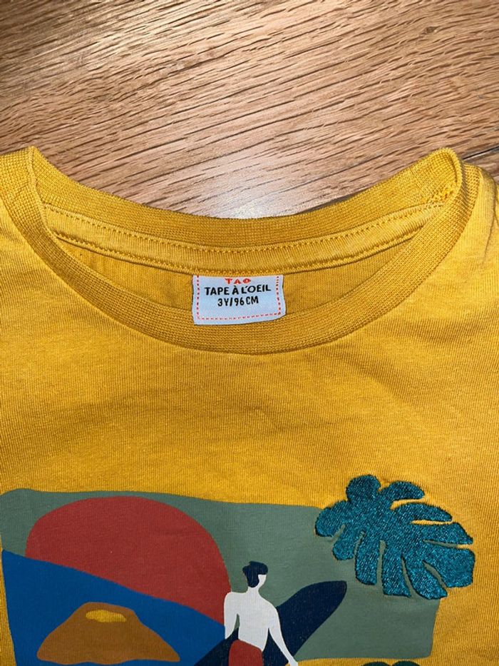 T-shirt jaune à motifs TAO très bon état 3ans/98cm - photo numéro 2