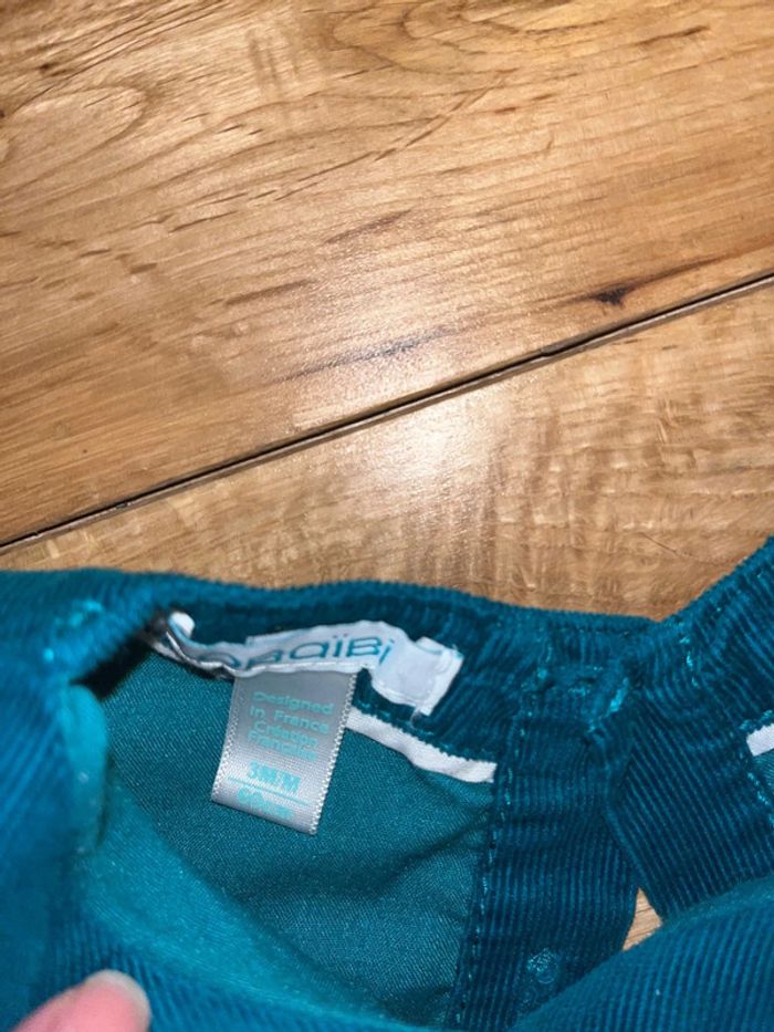 Jolie robe en velours vert canard obaibi très bon état 3 mois/60 cm - photo numéro 3