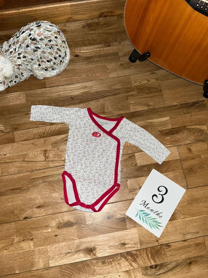Body croise blanc fleuri sergent-major très bon état 3mois/59 cm - photo numéro 3