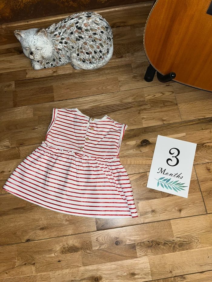Jolie robe lignée rouge brillant sergent major très bon état 3mois/59cm - photo numéro 3