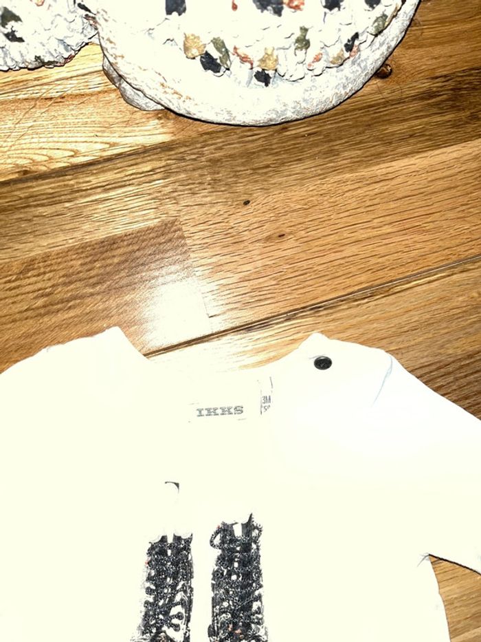 Tshirt blanc cassé motifs noirs pailletés Ikks Tres Bon état peu porté 3 mois/59 cm N’hésitez pas à faire un petit tour dans mon dressing je fais des prix sur les lots ☺️