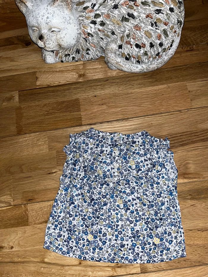 Jolie blouse tons bleus motifs liberty TAO très bon état 3mois/59 cm - photo numéro 3