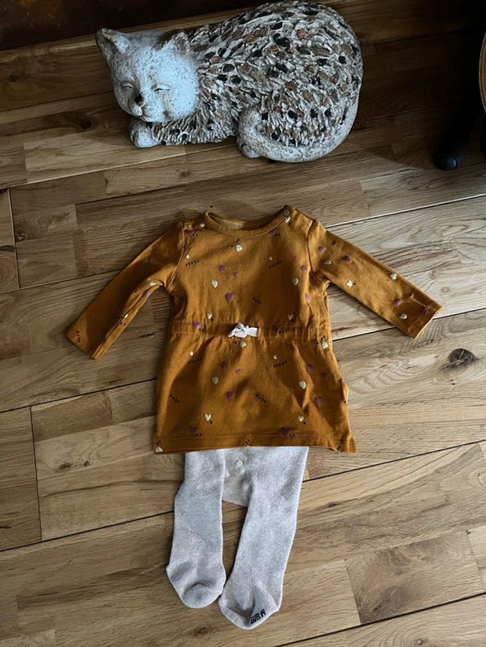 Petite robe moutarde et petits bas Robe 56 /1-2mois mais taille petit Petits bas sans marque t14 Porté une seule fois comme neuf N’hésitez pas à faire un tour dans mon dressing je fais des prix sur les lots ☺️