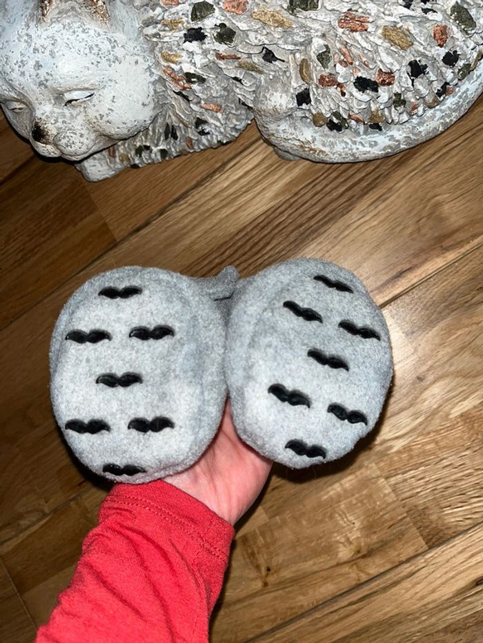 Petits chaussons gris en tissu Pas de marque pas de taille Va pour un bébé de 0-3 mois Nickels