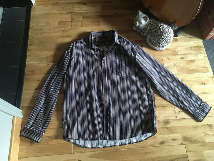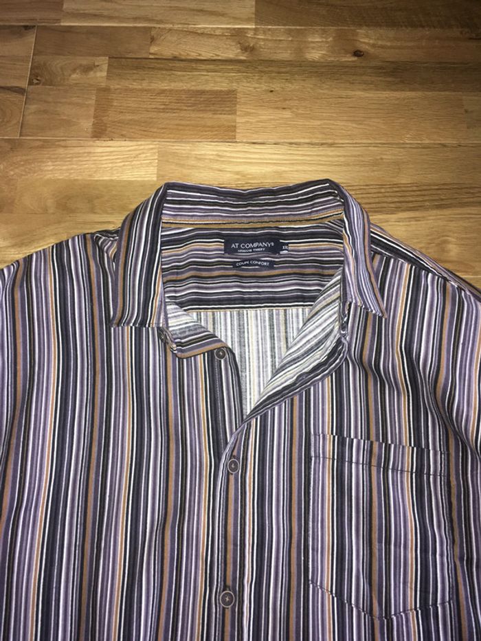 belle chemise finement lignée velours marron et prune Armand Thierry neuve 2XL
