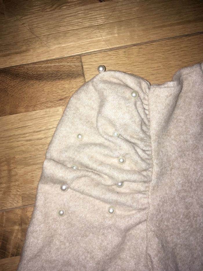 pull beige brodé de perles zara nickel M - photo numéro 3