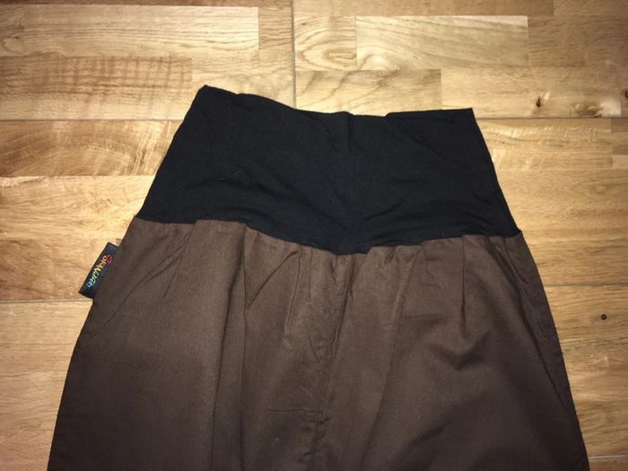 Pantalon droit marron ceinture large noire pas de fermeture s’enfile Tour de taille 66cm un peu elasthane longueur 102 cm Saialek Neuf M
