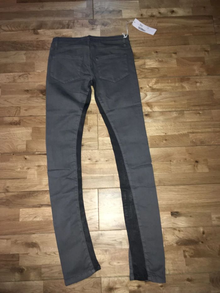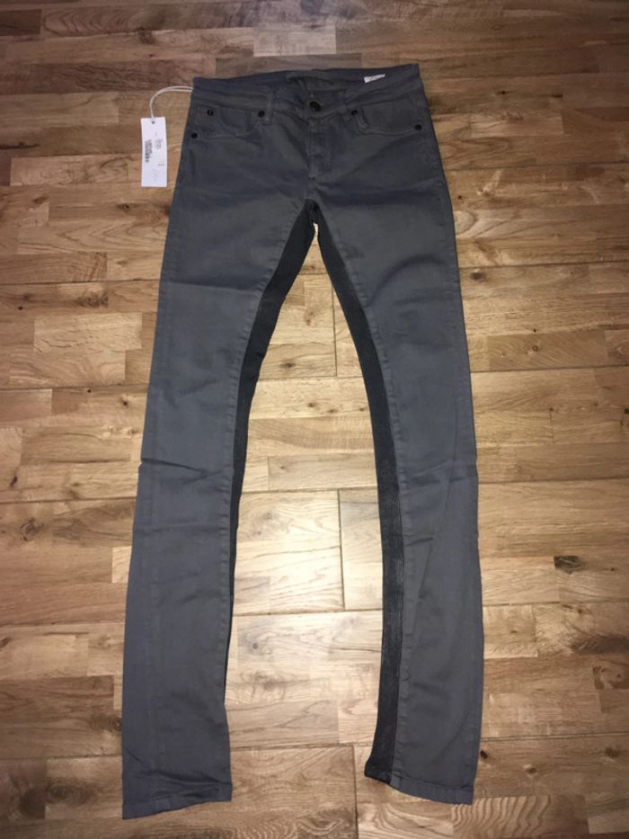 Jeans gris Skinny Orignal l’intérieur des cuisses est dans un autre tissu élastique Superfine Neuf T25=34 tour de taille 68 cm entrejambe 16 cm longueur 96cm Prix de base e magasin dans les 100euros acheté 50en Soldes