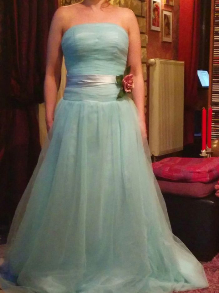 belle robe de soirée ou de demoiselle d'honneur turquoise , robe bustier neuve S achetée pour un mariage et jamais portée