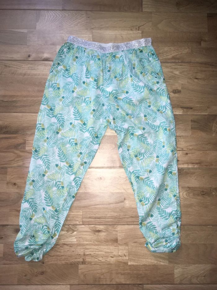 Petit pantalon d’été léger Taille élastique Vert /blanc motifs jungle ananas 4 ands/104