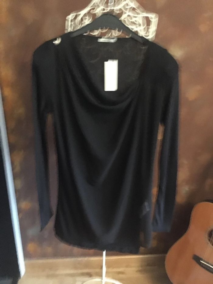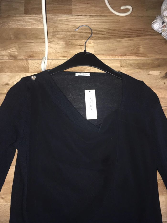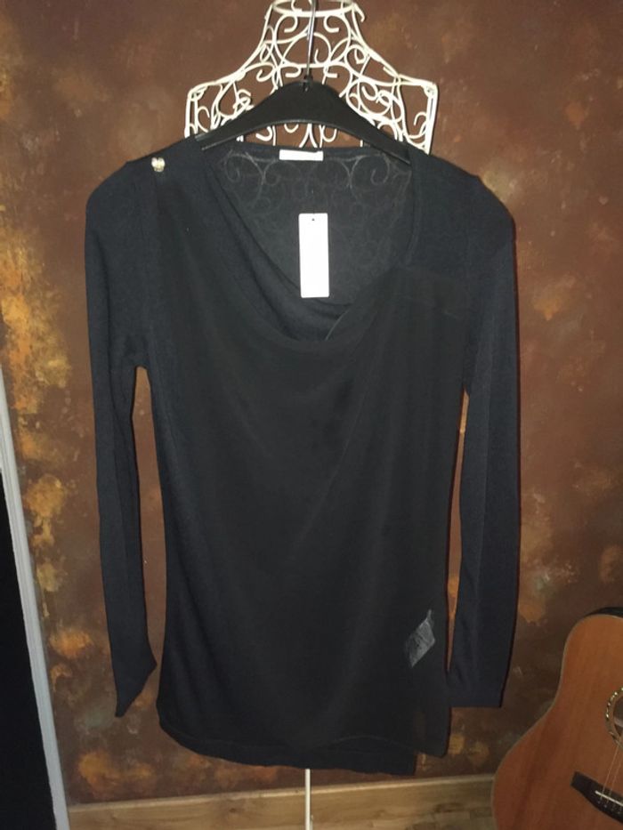 belle blouse noire en maille drapée d’un voile devant attache par un bouton dore à l’épaule intimissimi neuve avec étiquette s