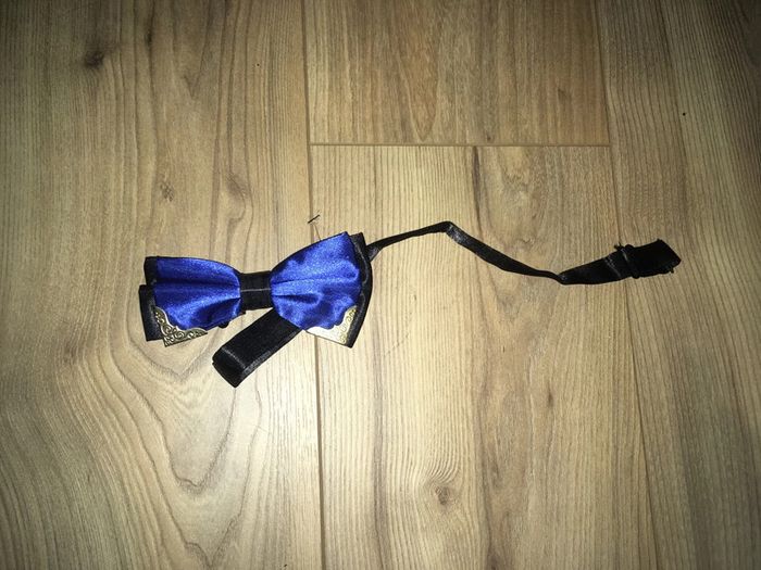 Noeud papillon réglable satin bleu et noir - photo numéro 1