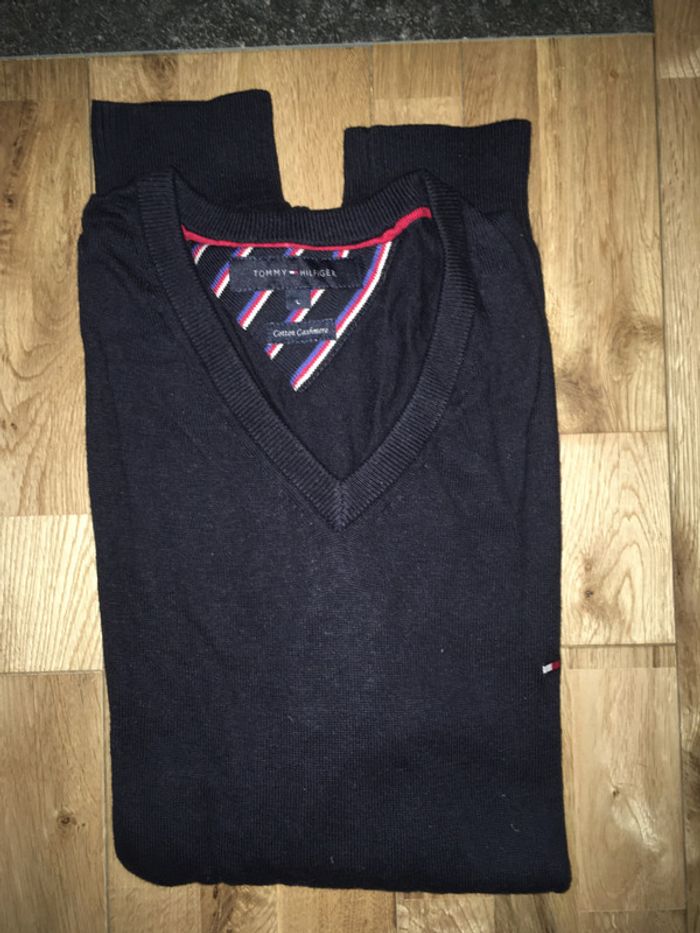 pull col v mariné Tommy Hilfiger coton cashmere L