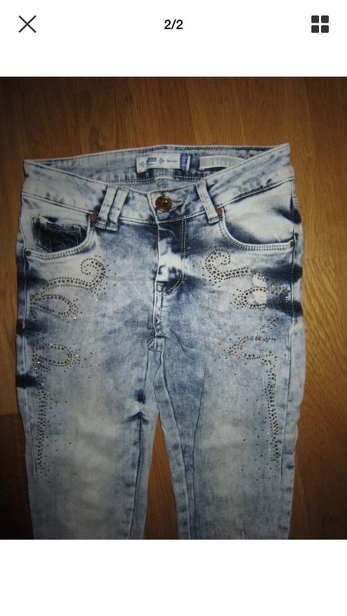 Beau jeans bleu délavé avec strass berschka 34 - photo numéro 1