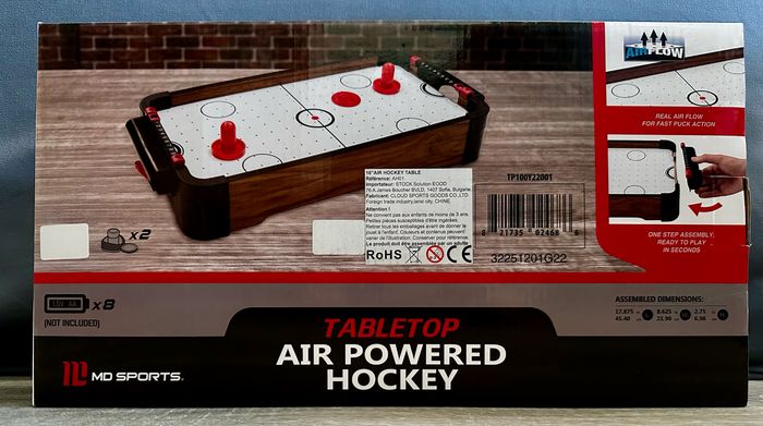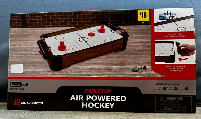 Jeu de hockey sur table neuf. Boîte non ouverte. Ce jeu fonctionne avec plusieurs piles AA. Cadeau offert à mon fils qui ne le veut pas.