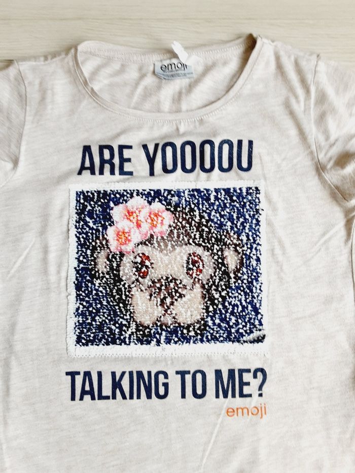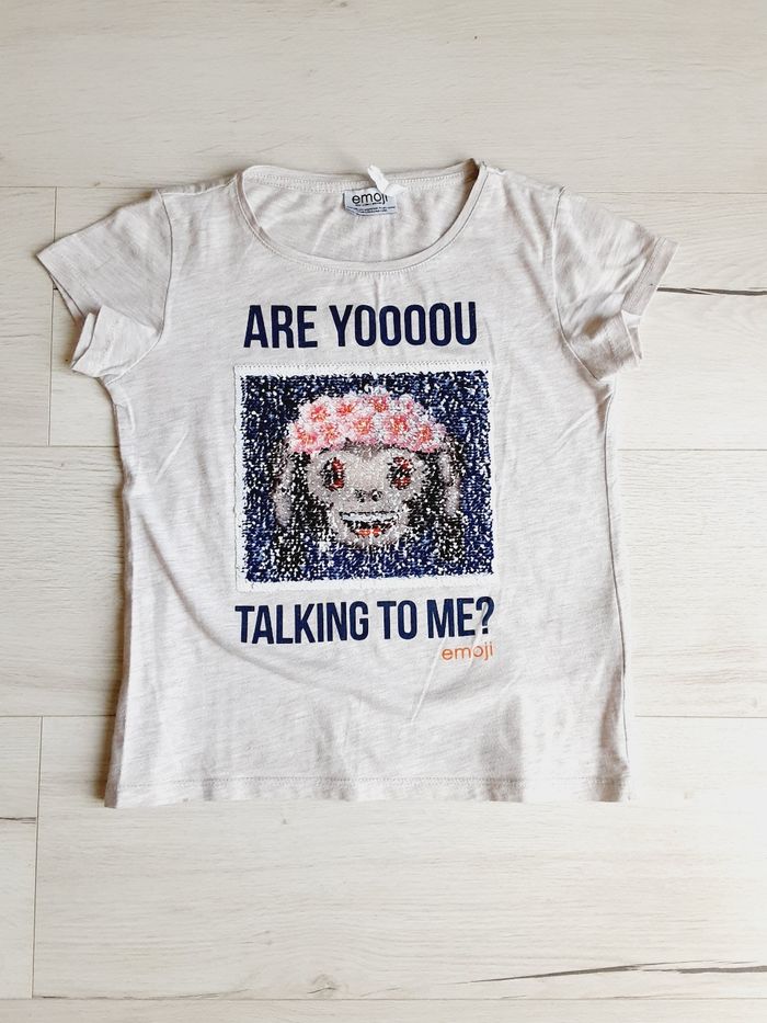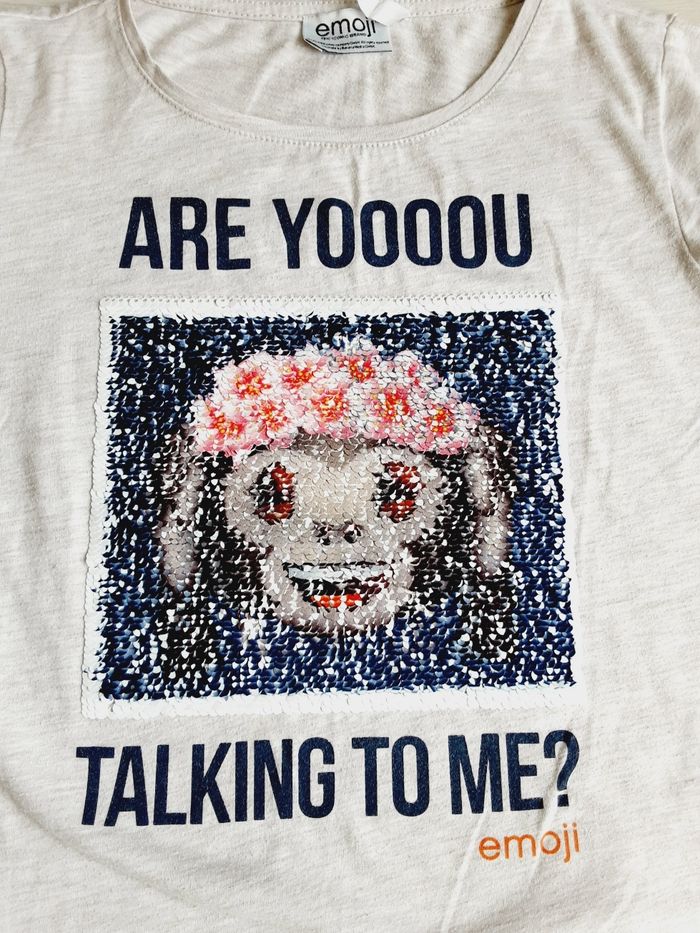 Vêtement fille tee-shirt manches courtes Emoji singe à sequins 9 ans