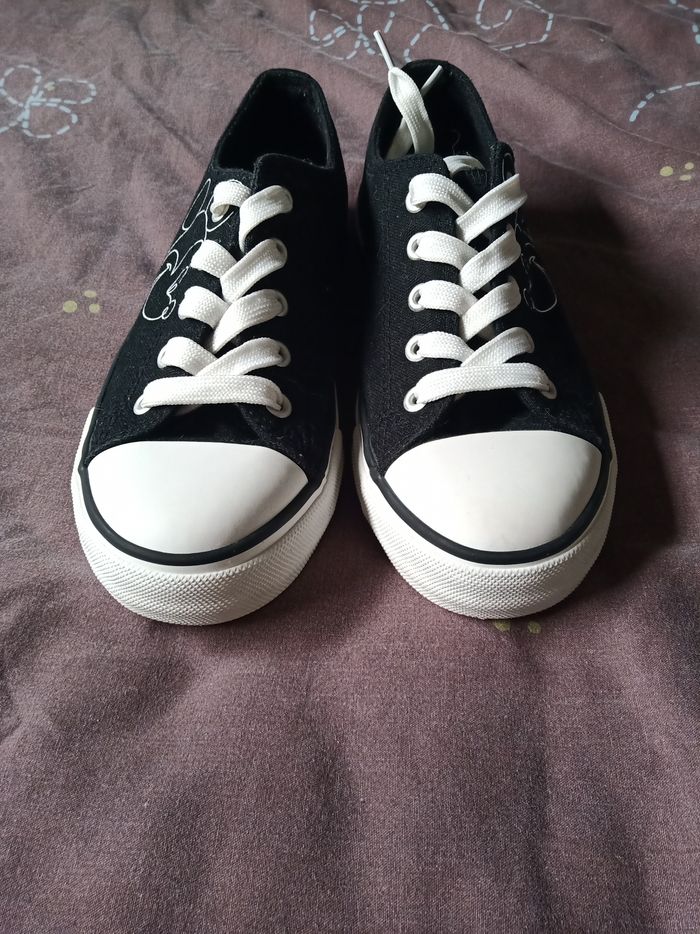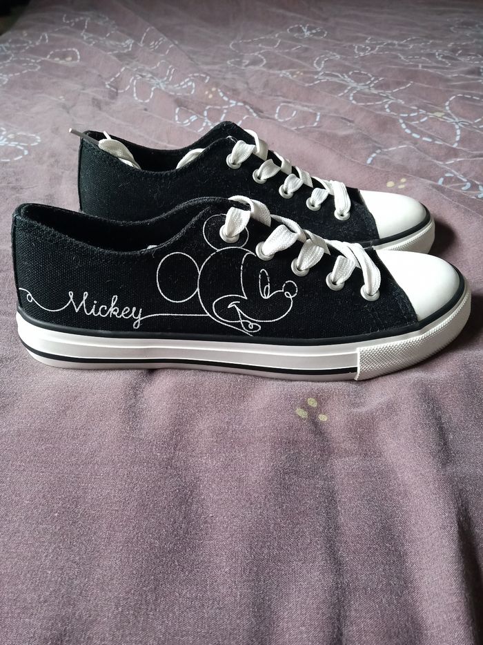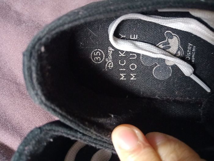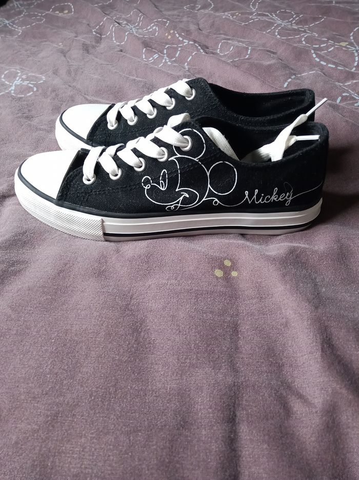 Bonjour, Je vends une paire de baskets en toile noir Mickey. Taille 35 en très bon état