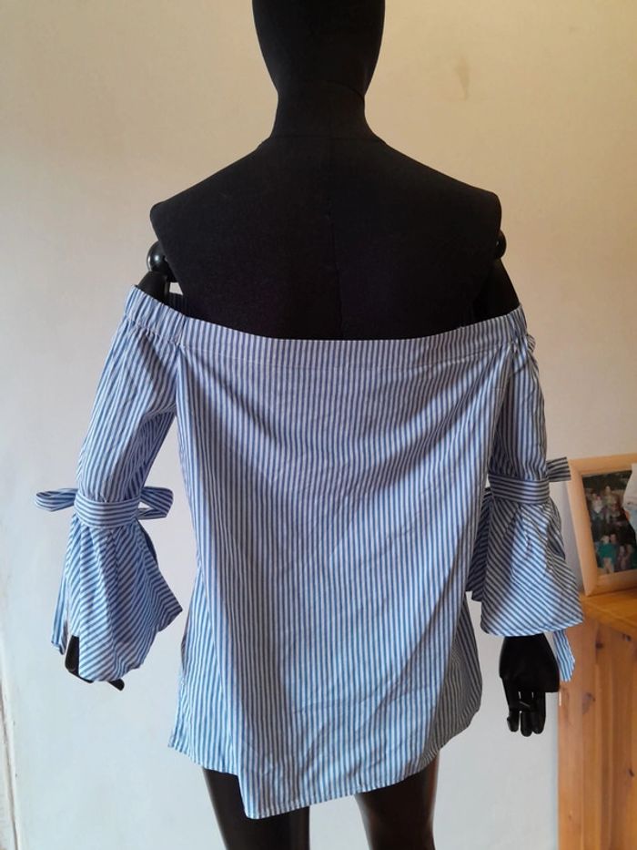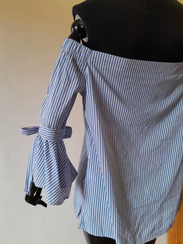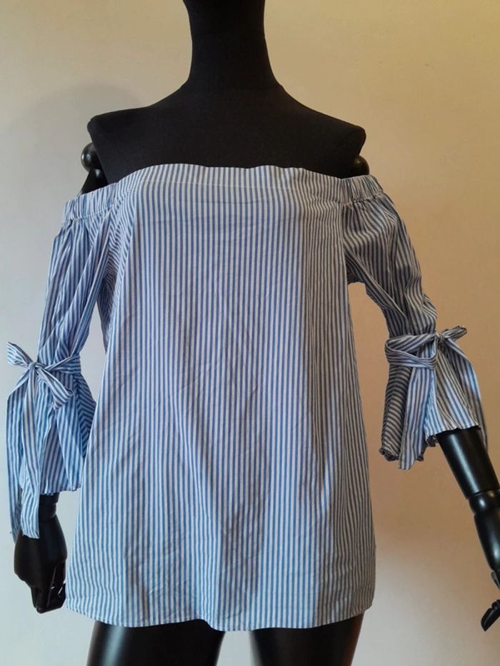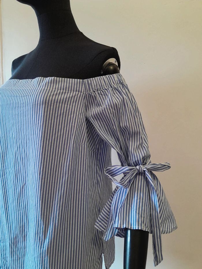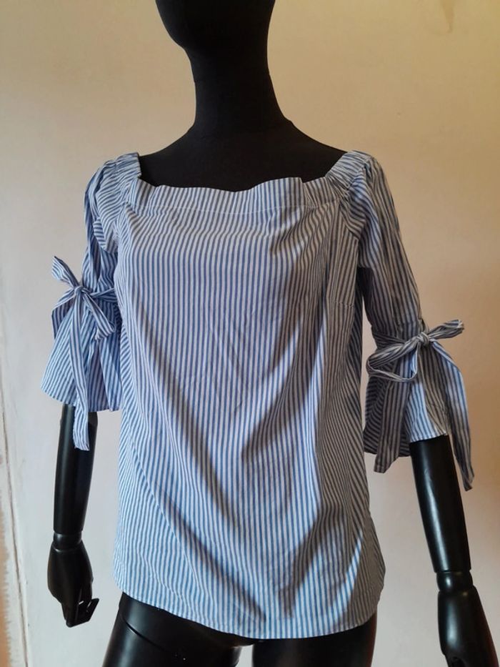 Top manches 3/4 rayures blanches et bleus avec noeud épaules dénudées
