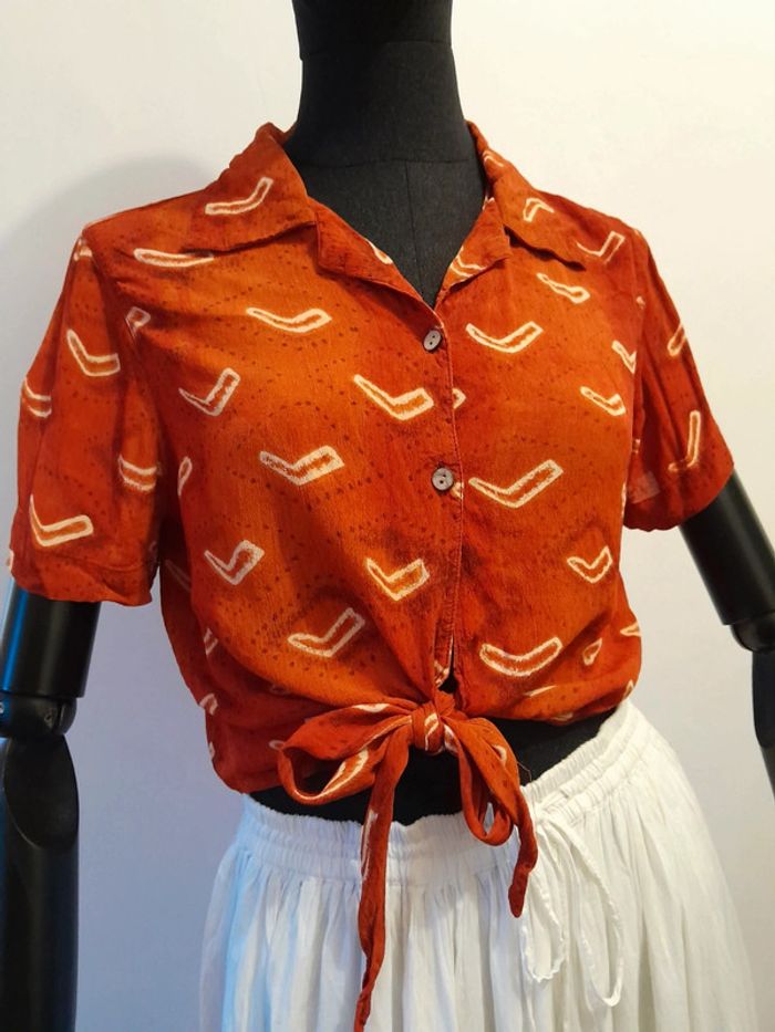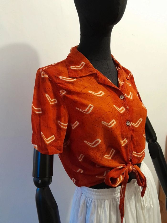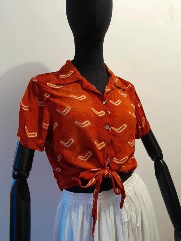 Chemise /blouse orange taille s noeud sur le devant - photo numéro 6