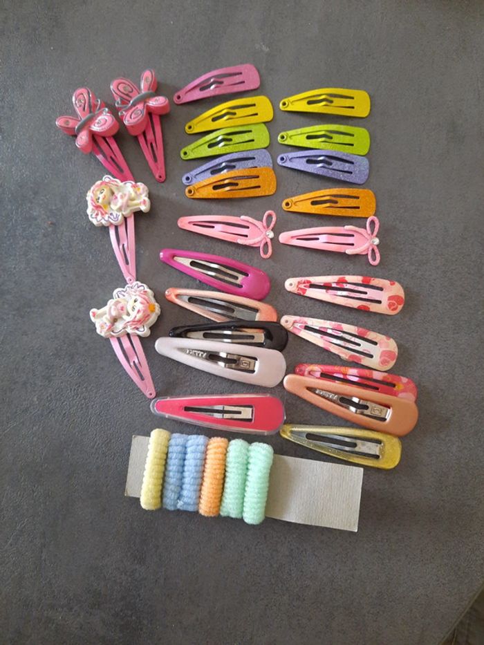 Lot barrettes bon état Et quelques élastiques neufs Suivant photo Réduction par lots activées %%%