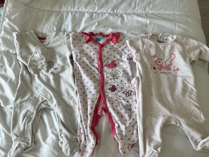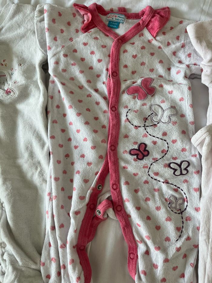 3 Pyjamas velours 3 mois Plusieurs marque : tex, Manon et Valentin, noukie’s Très bon état Lot pouvant être modifié avec d’autre vêtements du dressing N’hésitez pas à demander