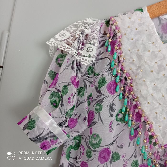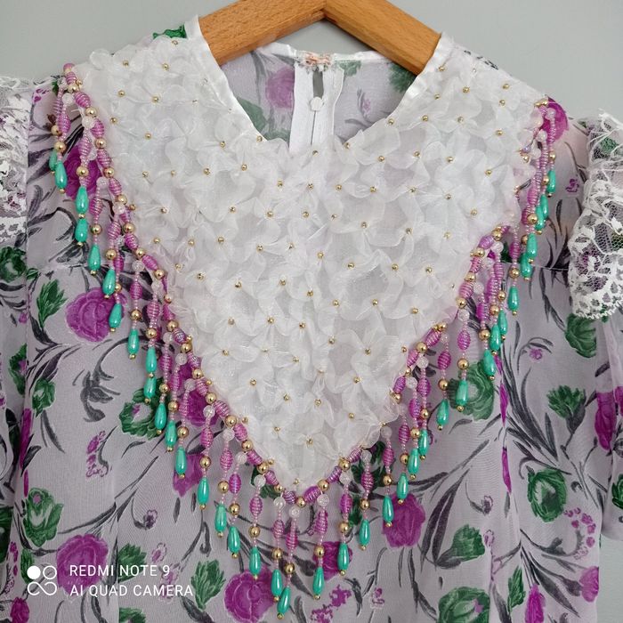 Taille estimée. Mesures sur demande. Jolis détails : dentelle, perles... C8