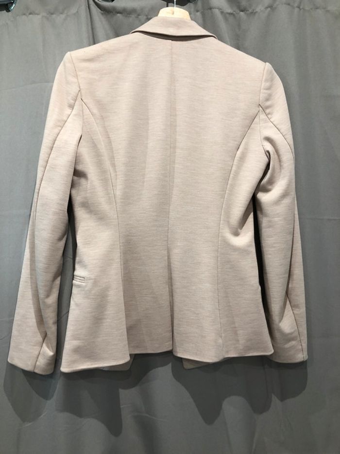 Veste de Tailleur rose poudrée en jersey doublée. A la fois chic et décontractée, elle peut se porter avec un pantalon, une robe, une jupe, un jean, en talon ou basket. Portée quelque fois, entretient pressing.