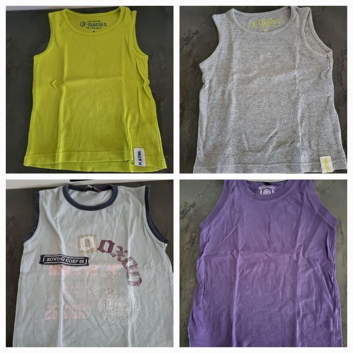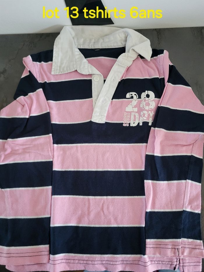 Lot des 13 t-shirts manches courtes longues débardeur Très bon etat 6ans Le polo rayé le col est un peu gris mais rien de mechant