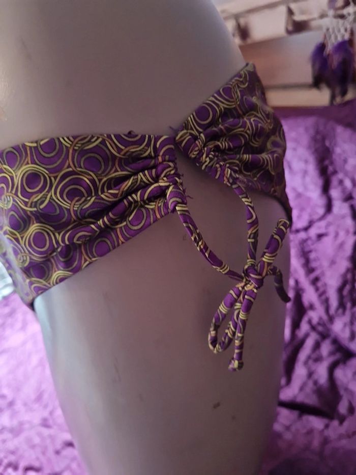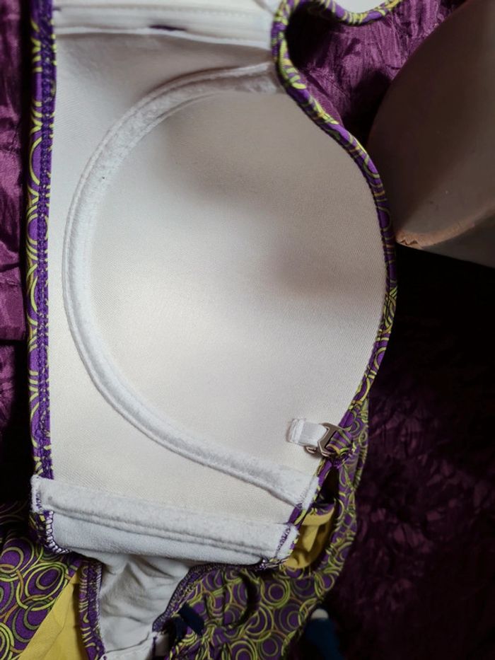 Acheté pour du neuf mais j'ai un petit doute vu une mini trace cf dernière photo mais ne me convient pas T 48 sur étiquette : équivalent à 44 Fr Le haut niveau où pas (bretelles amovibles) et avec armature Bas réglable par liés côtés