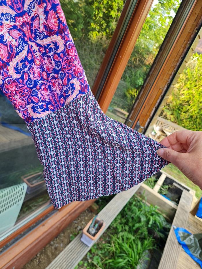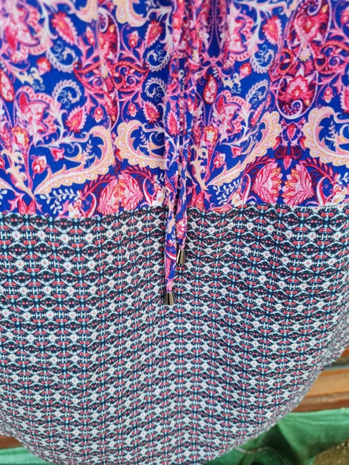 H 92cm env A a aisselle env 53 cm Au niveau du lien, élastiquée : 43cm étirable à 53 cm env