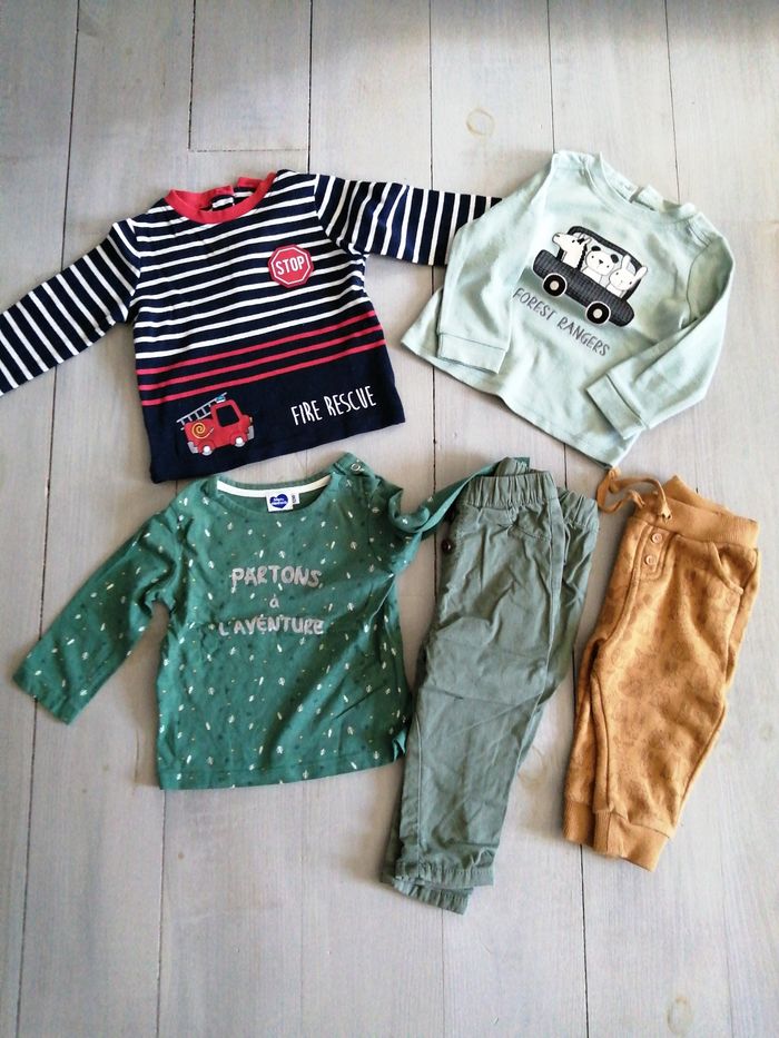 2 pantalons et 3 t shirts manches longues Pas de tâches