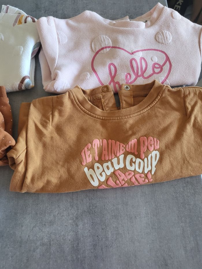 Lot comprenant : 4 sweat de 6 mois 1 leggins 12 mois