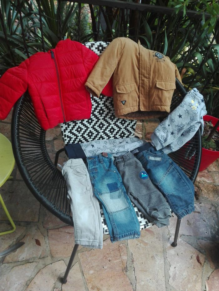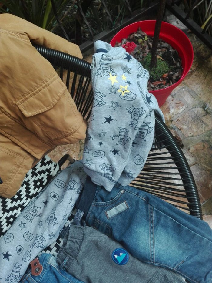 Lot vetement garco. Tres bon etat juste la veste joggiing une petite tache mais doit partir au lavage..