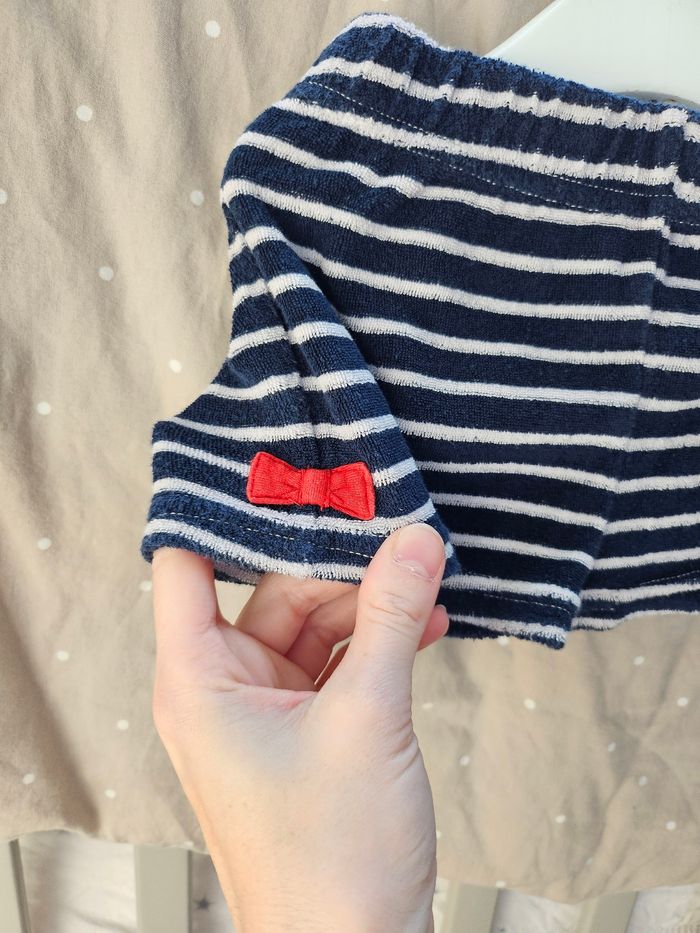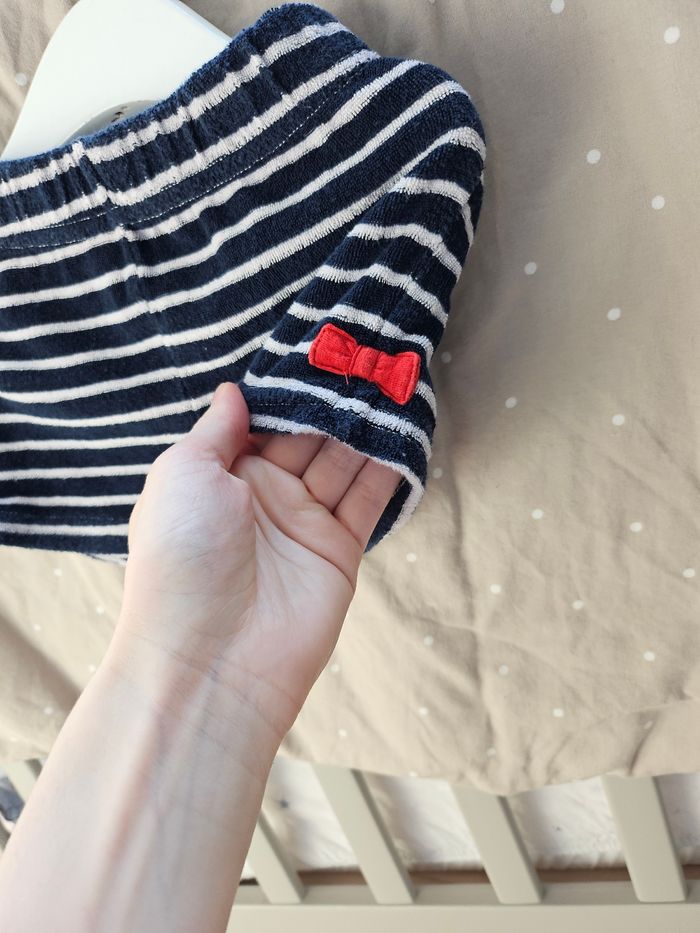 Ensemble marin, en très bon état. Très agréable à porter Un nœud de chaque côté