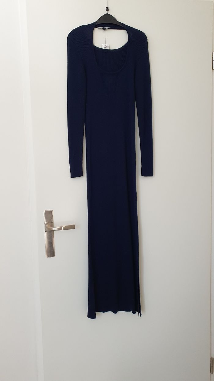 Robe neuve cottelé bleu marine Avec 2 fentes en bas sur les côtés Decolleté dans le dos En XS