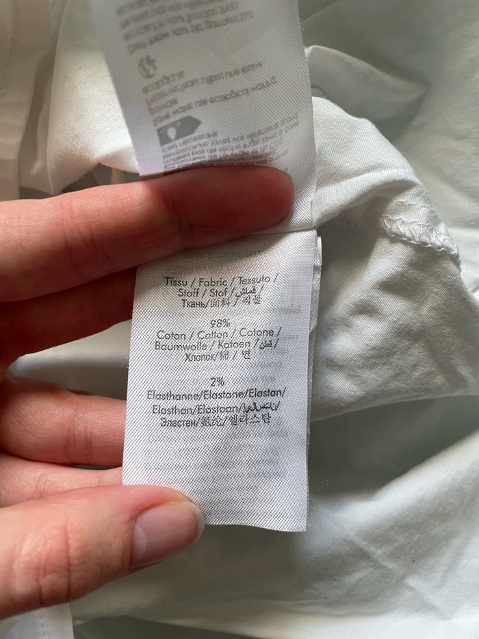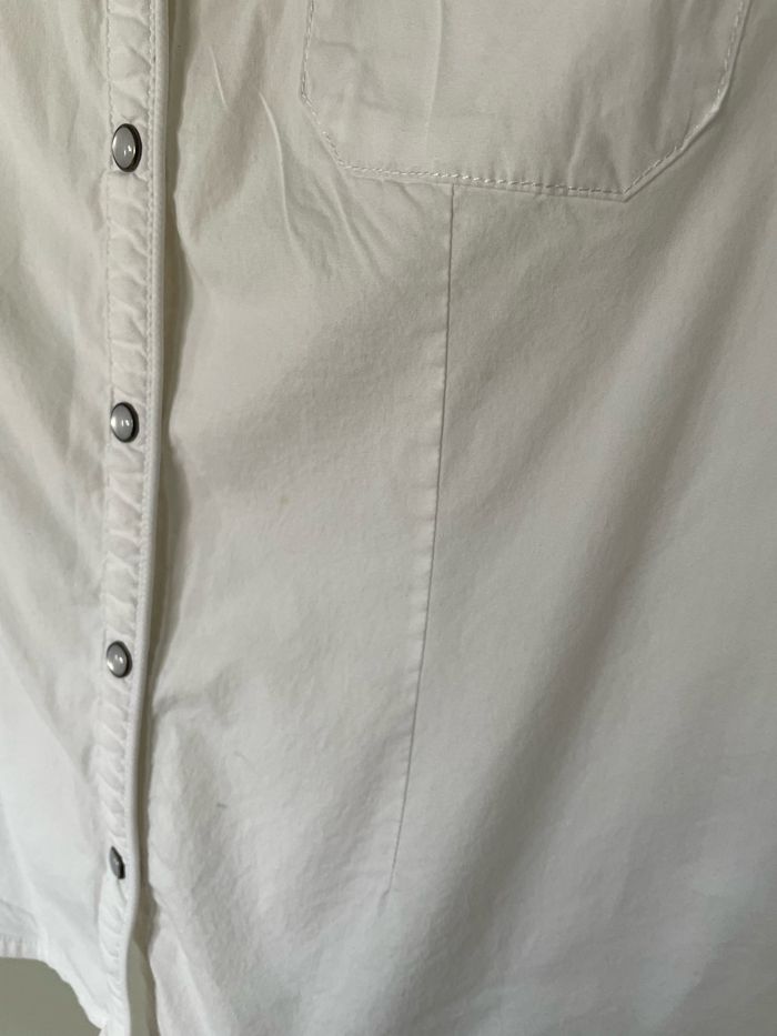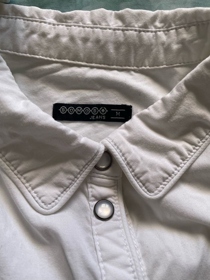 💬 Chemise blanche de marque Bonobo, en très bon état, peu portée. 3 petites tâches très peu visibles (voir dernière photo, elles sont entourées). 🛍️ Marque Bonobo 📏 Taille M 🧺 Lavée puis stockée dans une armoire en attendant son nouveau propriétaire.