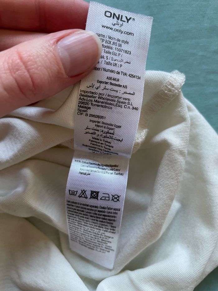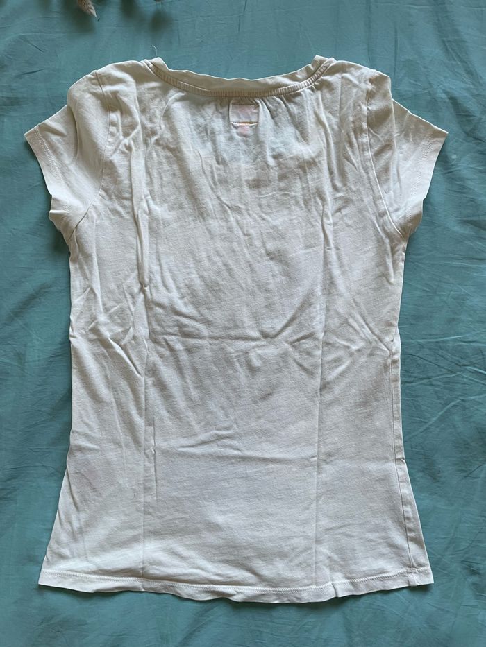 💬 T-Shirt Only crème. En très bon état. Il n’y a pas de tâche, la trace au milieu du col fait partie du motif du t-shirt. 🛍️ Marque Only 📏 Taille S 🧺 Lavé puis stocké dans une armoire en attendant son nouveau propriétaire.