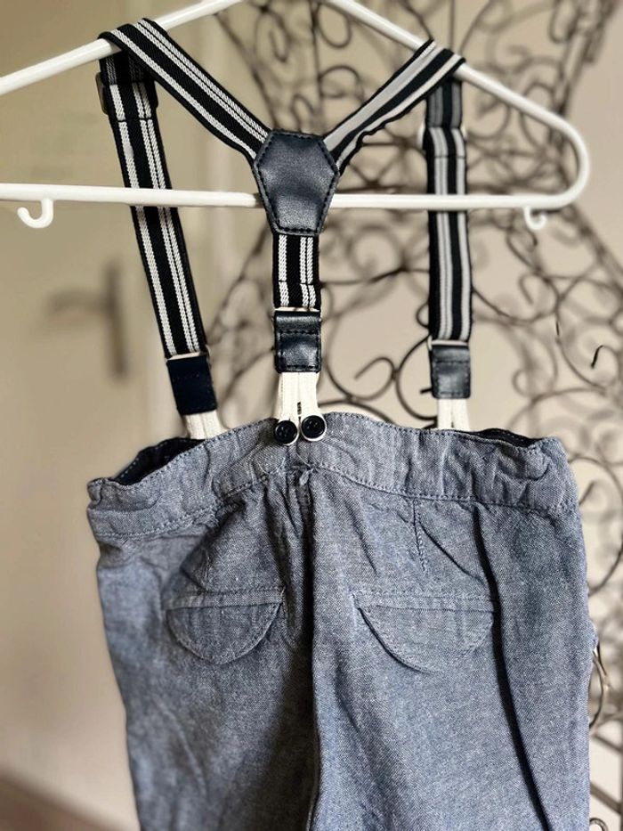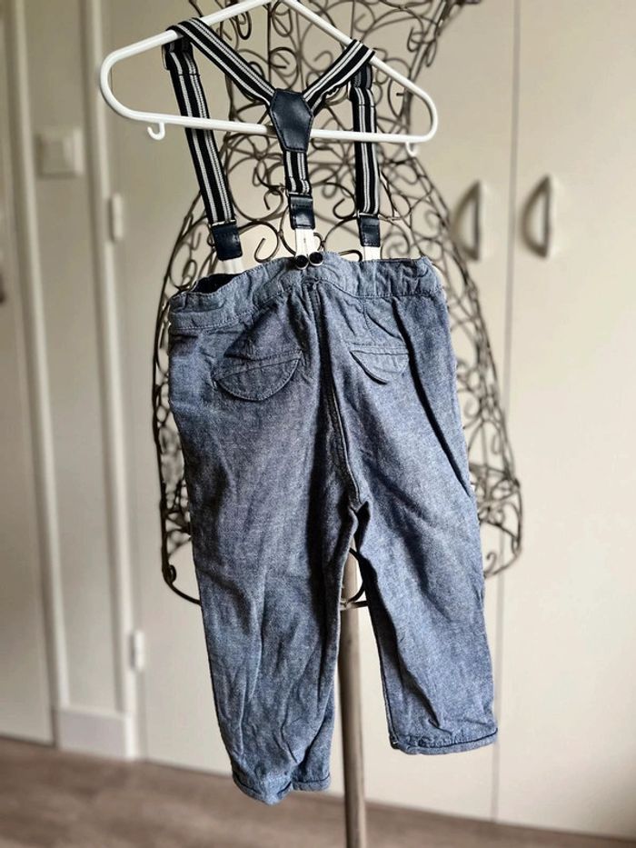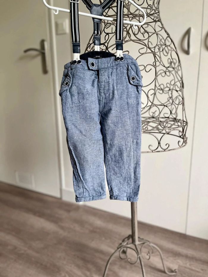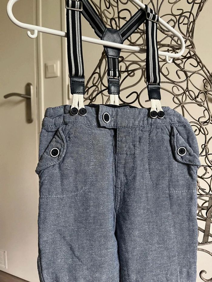 Pantalon bleu avec bretelles Kiabi 18 mois - 77-82 cm Parfait pour un mariage ou autre événement Très bon état