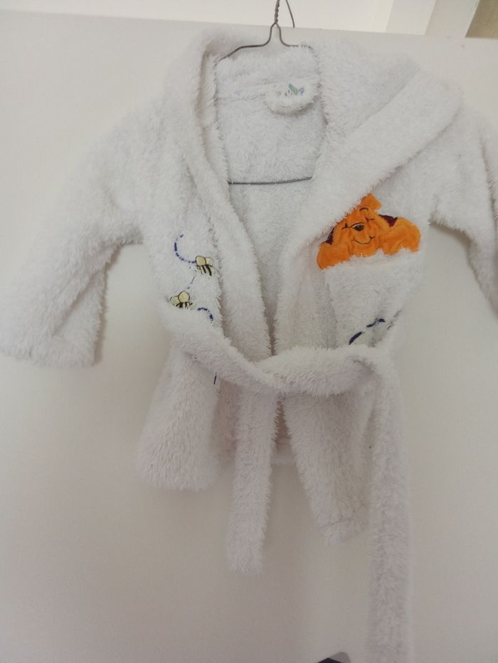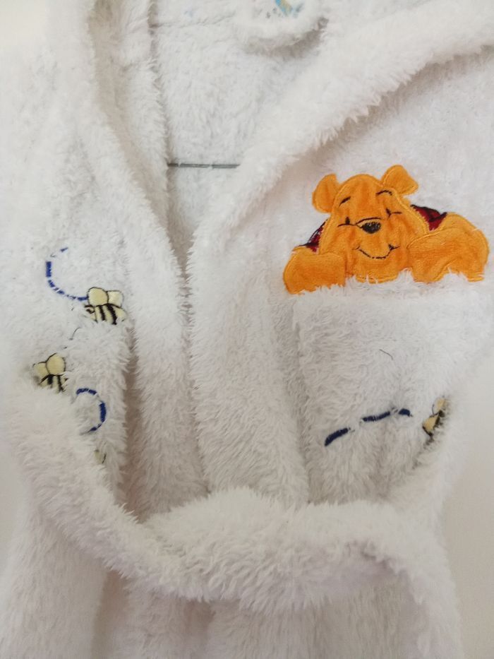 Peignoir Winnie l'ourson 6,12 mois pour bébé mixte, bon état général. Beaucoup d'autres articles mm taille également à vendre ds mon dressing et réduction activée
