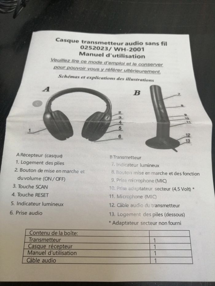 Casque audio , transmis audio . Neuf jamais servit Juste essayer casque vers téléphone pour être sûre qu'il fonctionne marche parfaitement