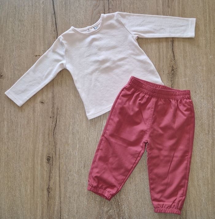 Ensemble 2 pièces Pantalon souple avec taille élastique Tee-shirt manches longues Taille 12 mois #priscille12MoisFille