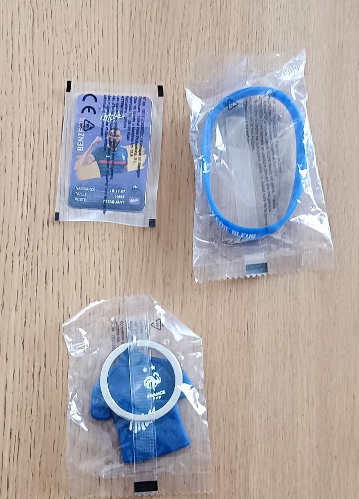 ⚠️Veuillez consulter mes autres articles, je suis en train de m’en débarrasser⚠️ État : neuf avec étiquette Porte- clé "Rabiot " + bracelet " fiers d'être bleus" + carte collector "Benzema" Lot possible avec mes autres annonces. Envoi rapide (Mondial Relay) et soigné Ouvert à la négociation Lot indissociable #football #foot #edf #edffoot #equipedefrance #goodies #fff