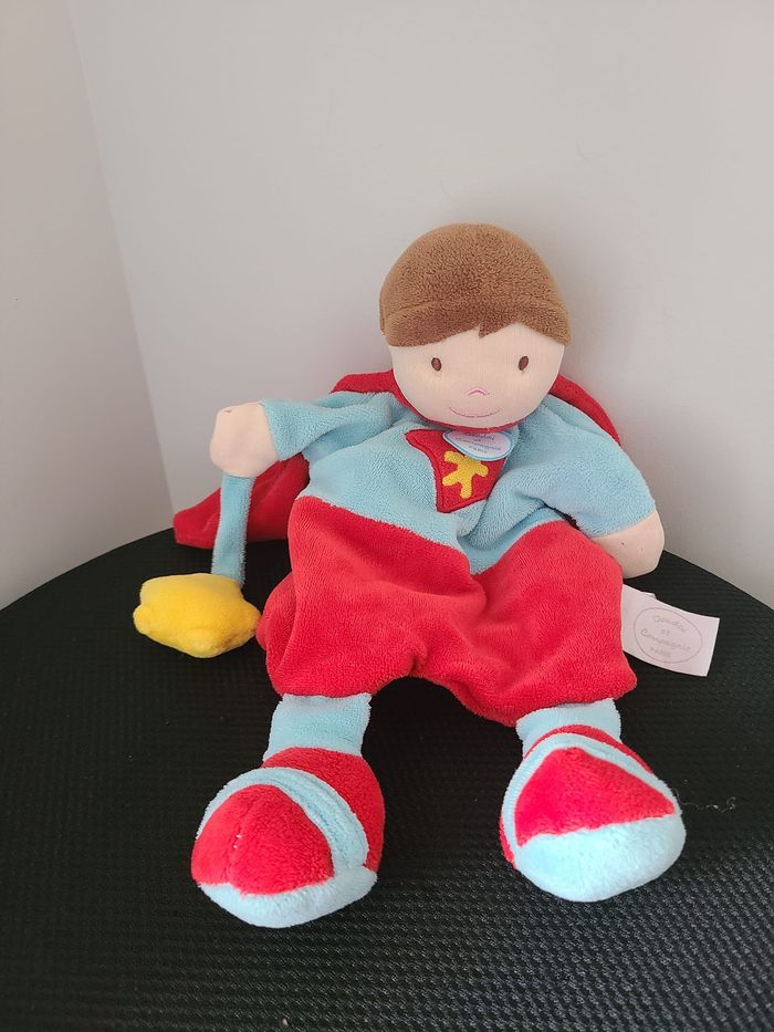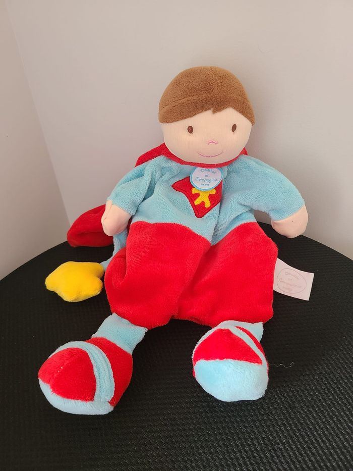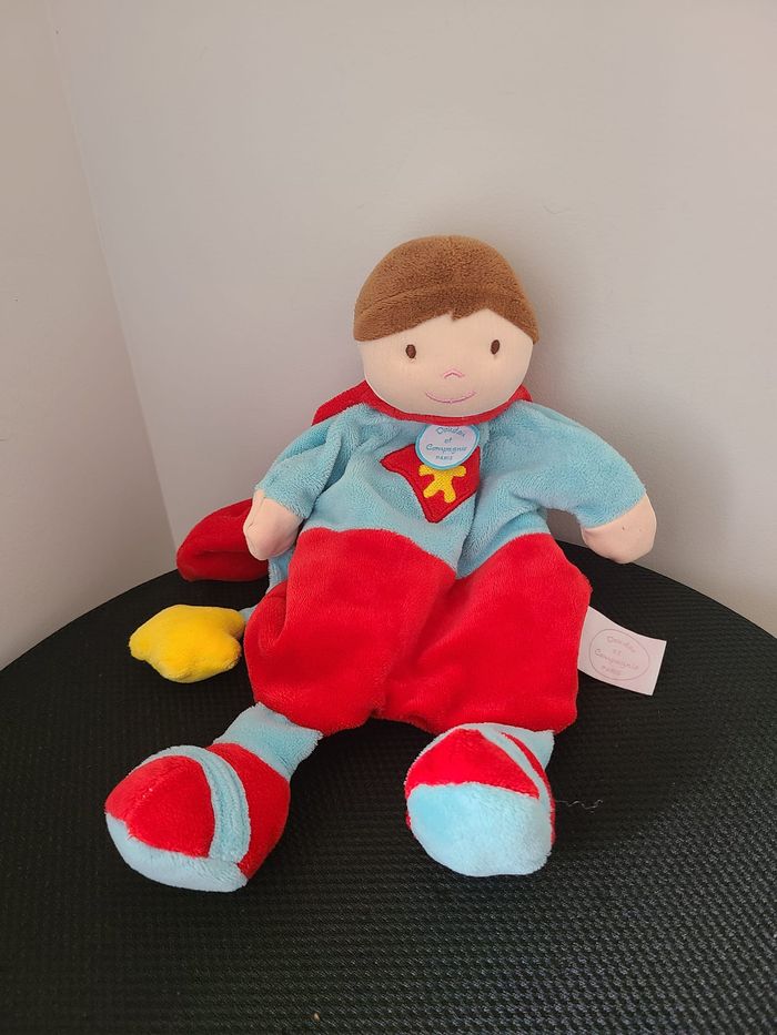 DOUDOU MARIONNETTE GARÇON DOUDOU ET COMPAGNIE SUPER HÉROS ROUGE BLEU 31 CM 129