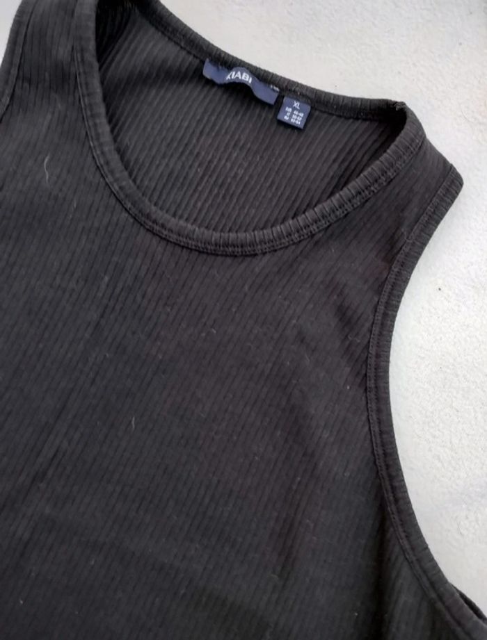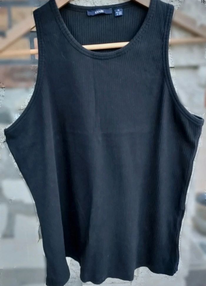 Débardeur noir. Marque : Kiabi Taille : XL /46/48. Largeur aisselle à aisselle : environ 46 cm Plus d'étiquettes concernant la matière et le lavage.