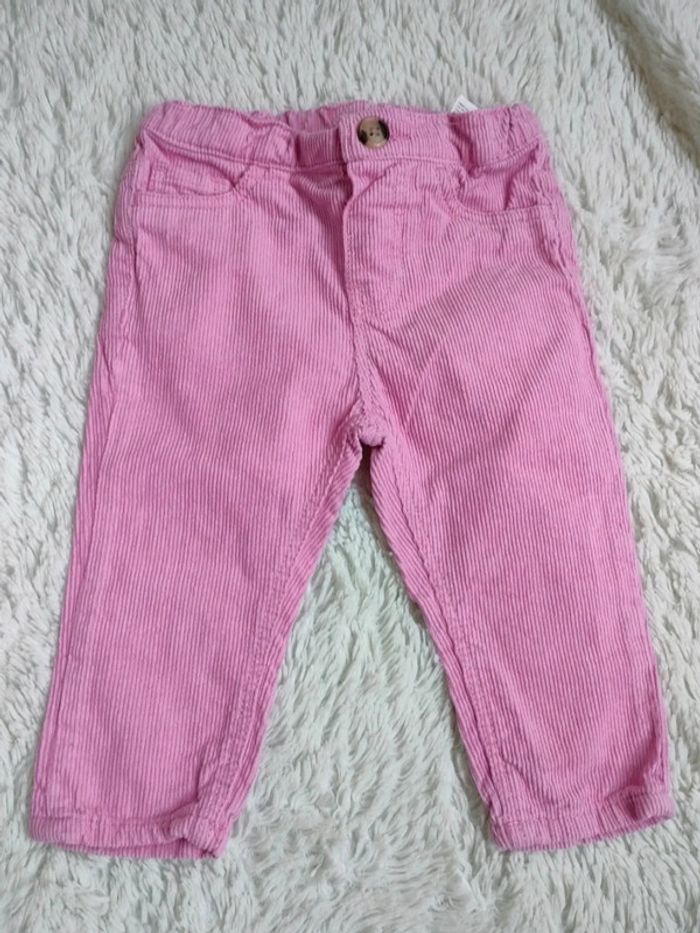 Pantalon rose fausses poches, taille élastique. Plutôt épais Taille :74 cm Marque : H&M Matière : 100% coton.