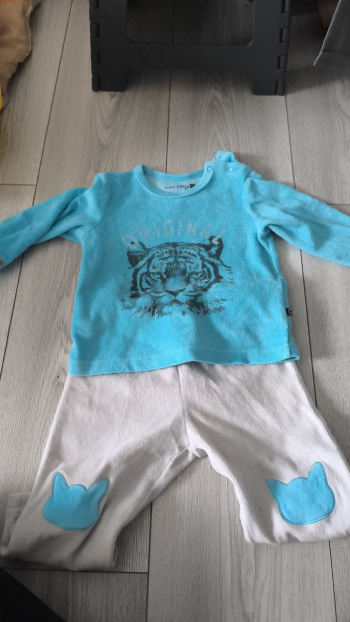 Pyjama pantalon + haut bleu et gris petit bouton sur le haut ( pyjama peut s'attache ensemble ou séparément)
